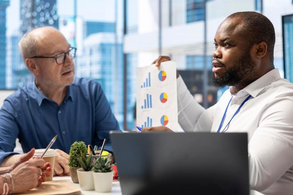 Weniger ist mehr. Ein klares Ampelsystem, kurze Kommentare und die nächste Maßnahme reichen. Eine Agentur markierte verspätete Aufträge rot und besprach sie täglich fünf Minuten. Überraschend reichte diese Mini-Routine, um die Pünktlichkeit kontinuierlich zu verbessern.